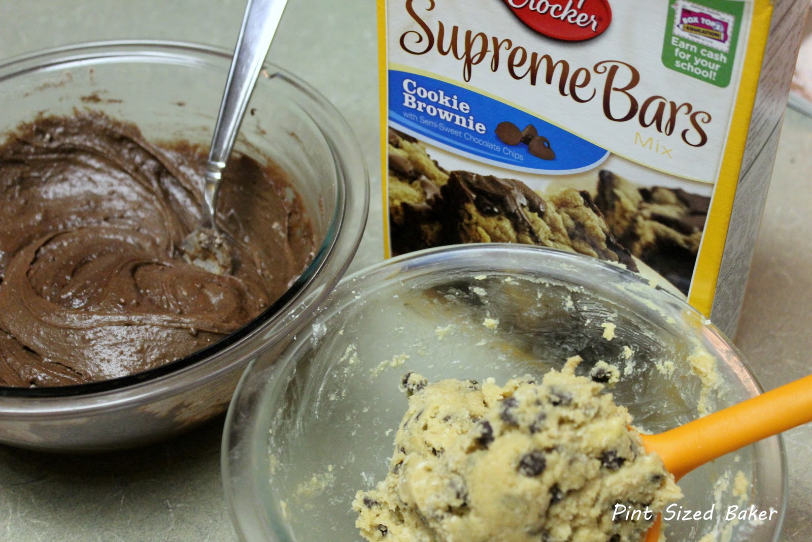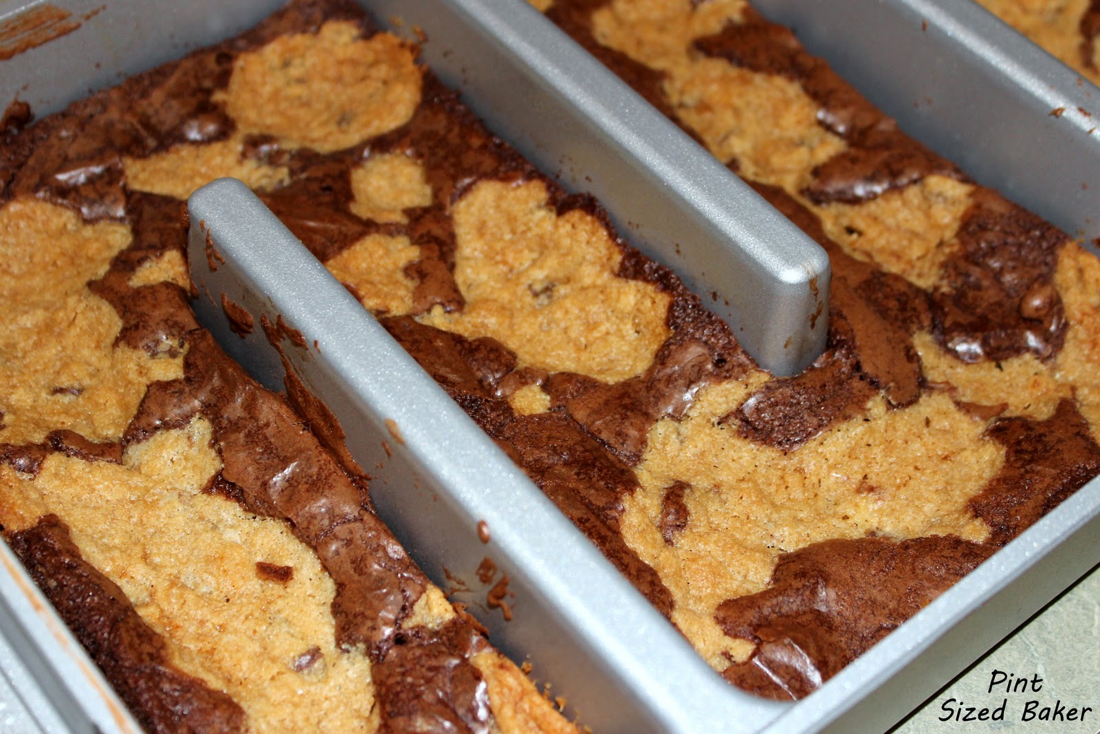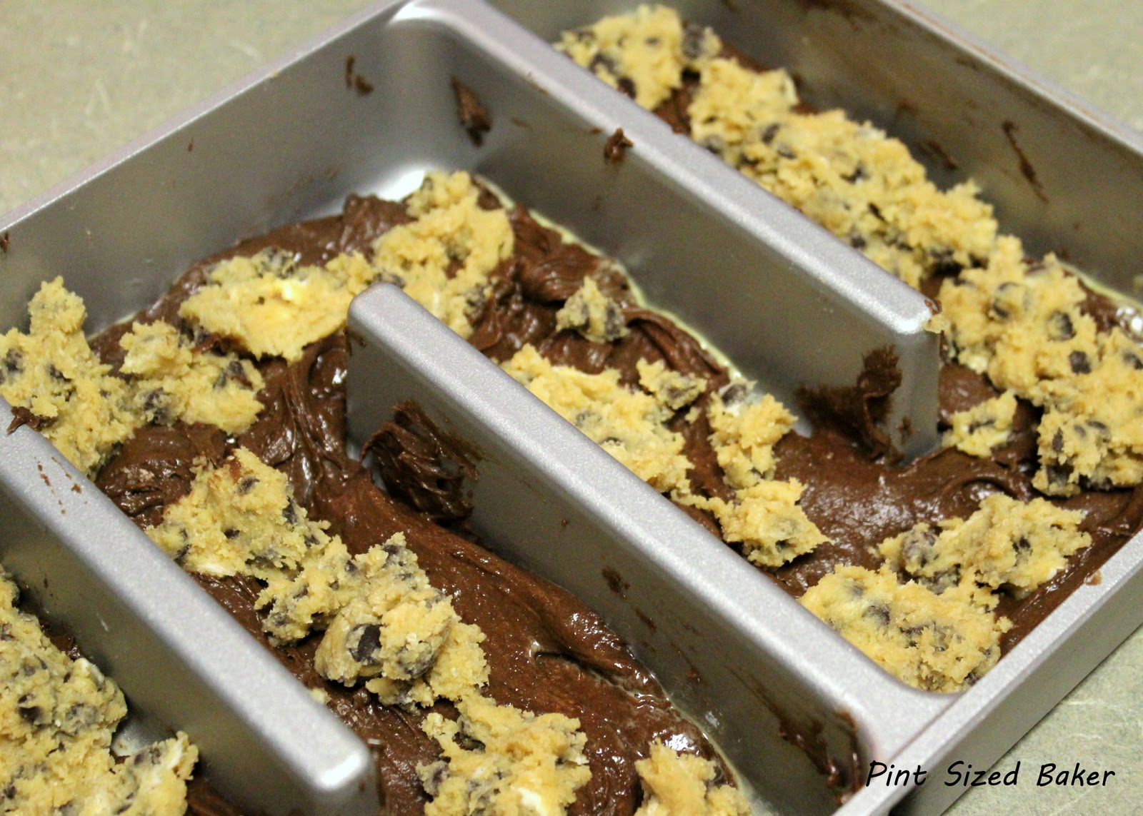 I followed the directions and baked them up! I was a bit worried that the mixture would not be enough. The brownie layer looked pretty thin and the cookie batter was very thick.