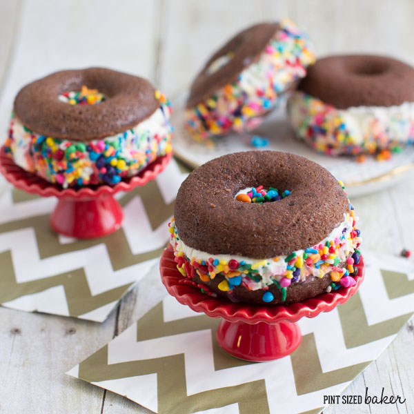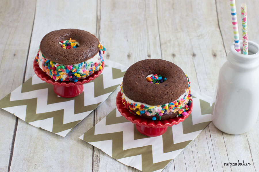 Easy Brownies baked in doughnut forms and then transformed into Brownie Ice Cream Sandwiches! The kid LOVE these for after school treats!