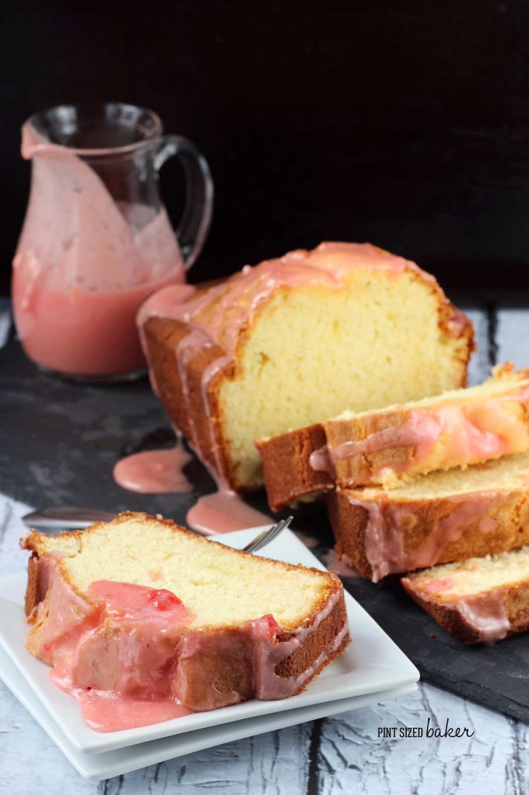 Pour the strawberry glaze over the pound cake and serve. You can wait 30 minutes to allow the glaze to harden if you enjoy it that way better.