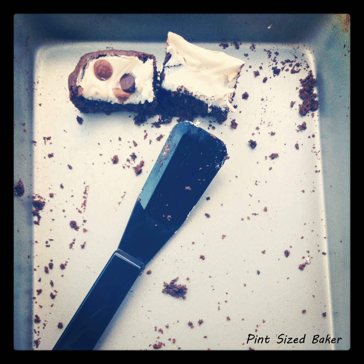 When the “brownies” are done baking they are really puffed up and full of air. As they cool, they sink back down and compress. I wish the fluff would stay a but more fluffy…