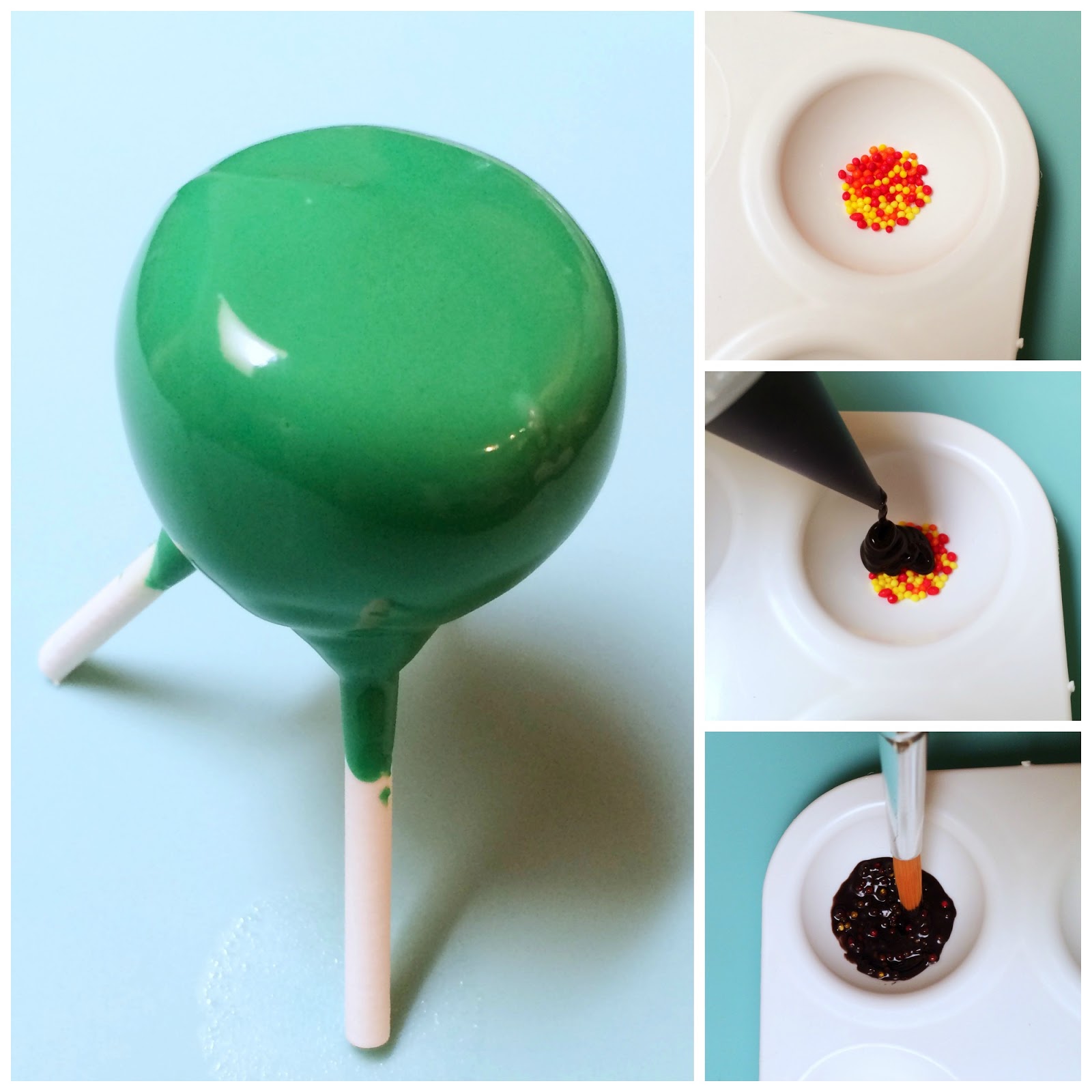 4. Dip your pop into the melted chocolate and set upright to dry.