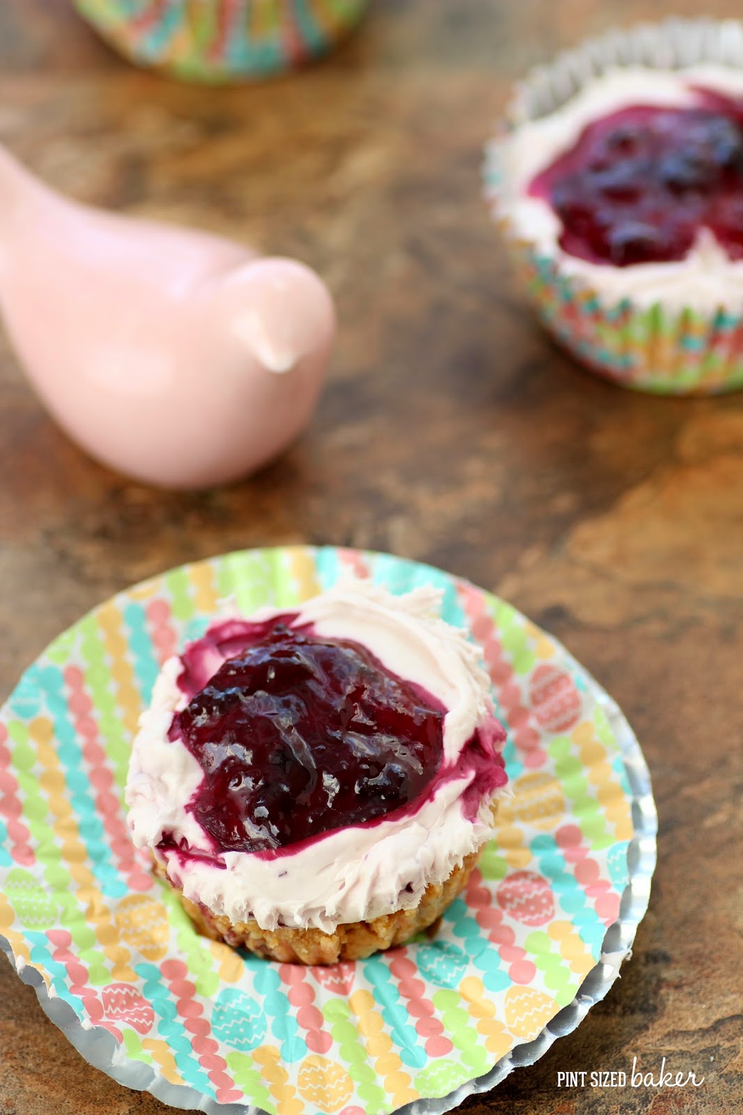 There’s no need to head off to the Montana Mountains when you can easily make some of these Mini No Bake Huckleberry Cheesecakes at home.