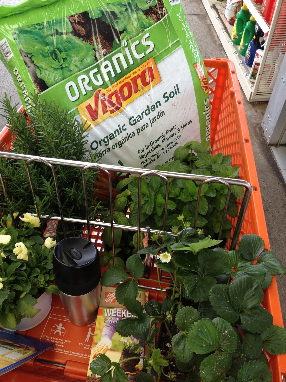 While there, I picked up some Organic Garden Soil and Potting Soil, some small basil plants, spearmint, rosemary, strawberries, and a pansy. I plan on making recipes with all of these plants.