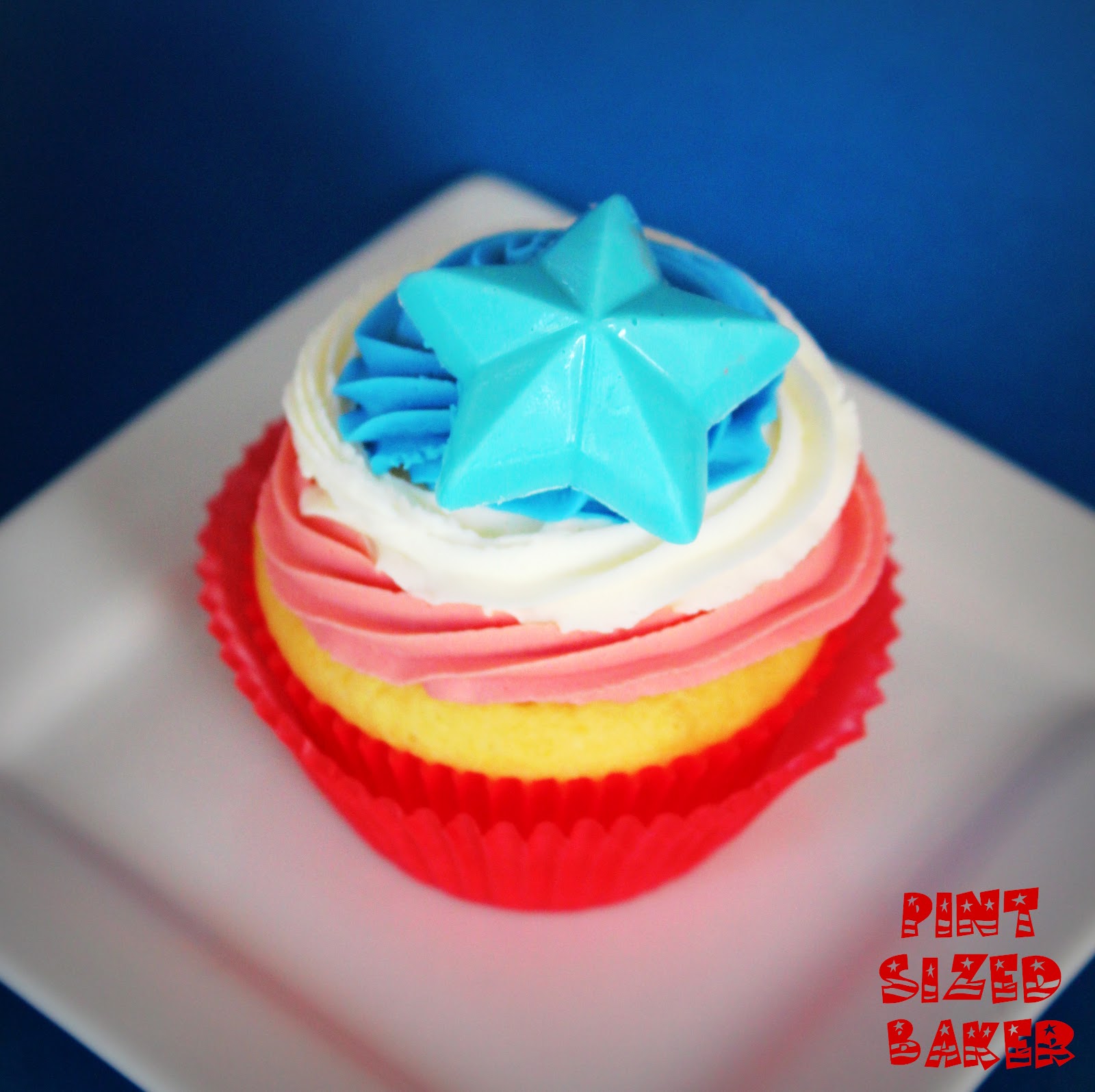 That is a lot of fun ideas in one cupcake! I love how the filling matches the frosting and the star on top is so fun!