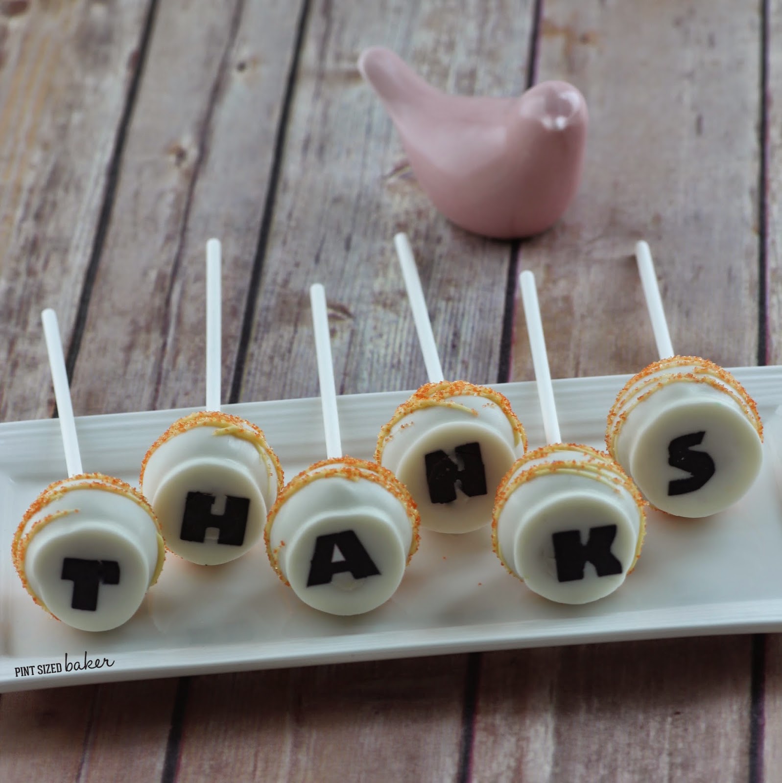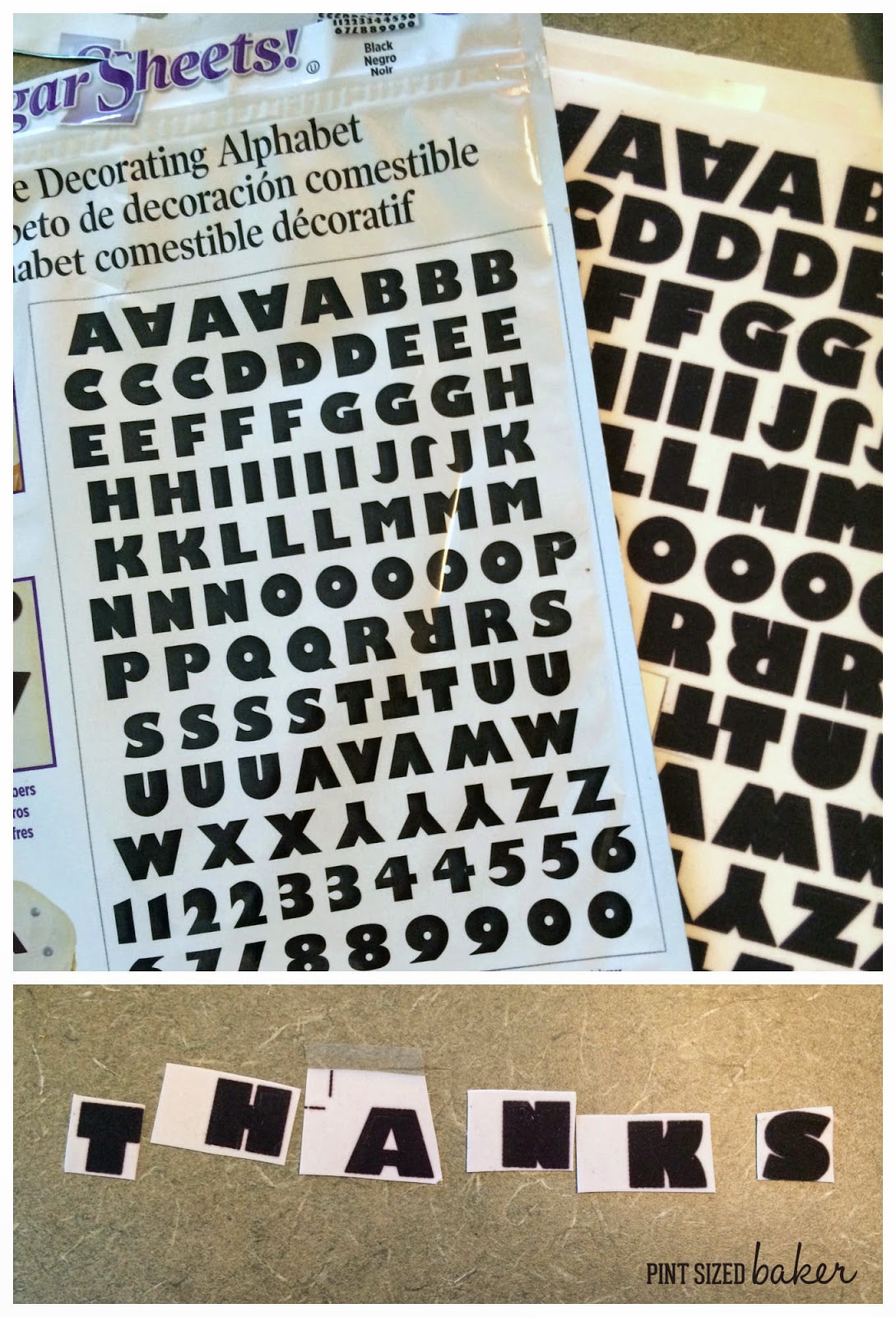 I simply bought some Wilton Sugar Sheets, cut out the letters and set them aside. While dipping the cake pops, I simply placed them down over the letter and let them dry before decorating them.