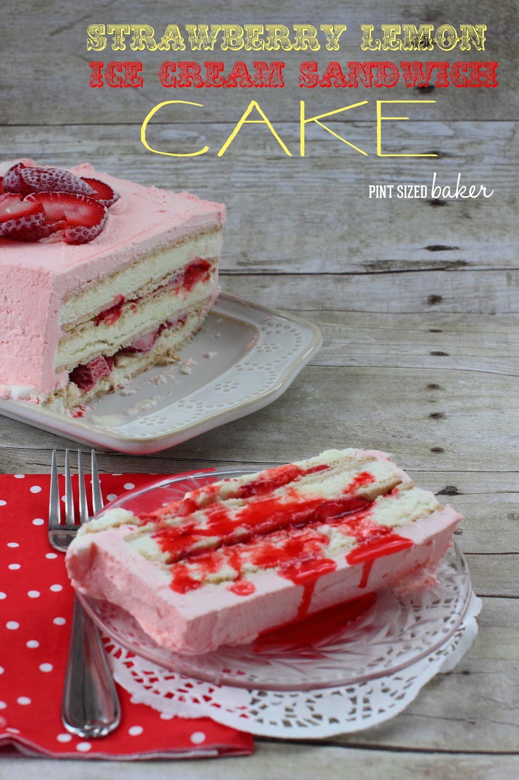 This summer has been all about cooling off! It’s been a hot one, but that’s why we have ice cream right? I was seeing all of these ice cream sandwich cakes online and they looked so good covered in chocolate and caramel, but when I saw lemon ice cream sandwiches in my grocery store, I knew that Strawberry Lemon Ice Cream Cake was a MUST!