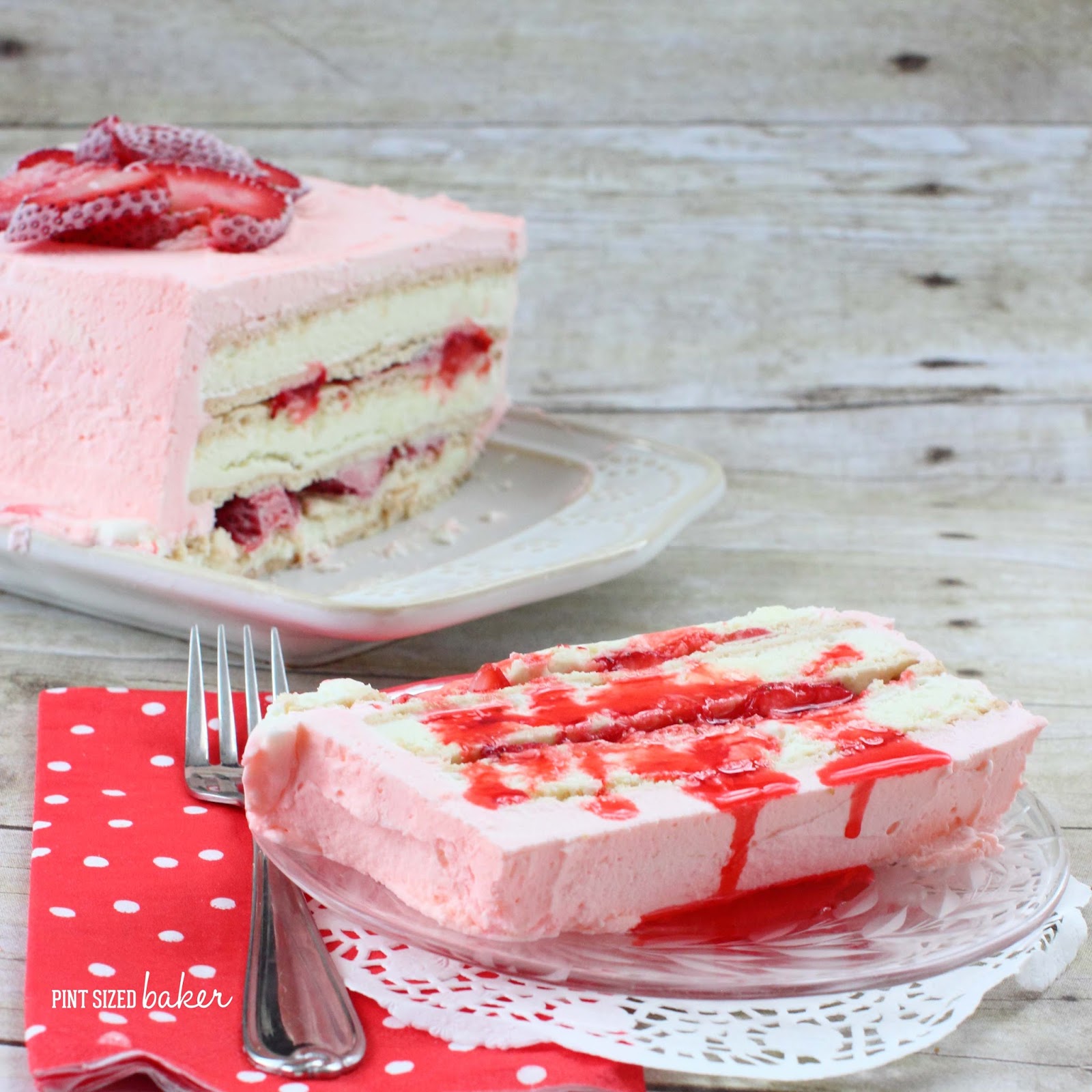 - Unwrap and arrange 4 ice cream sandwiches on a platter. Add some strawberry syrup and a layer of fresh strawberries. Repeat with a second layer and top it with a third layer of sandwiches. Frost the layers with the strawberry whipped cream and place into the freezer to firm up. Top with extra strawberries, slice and serve.