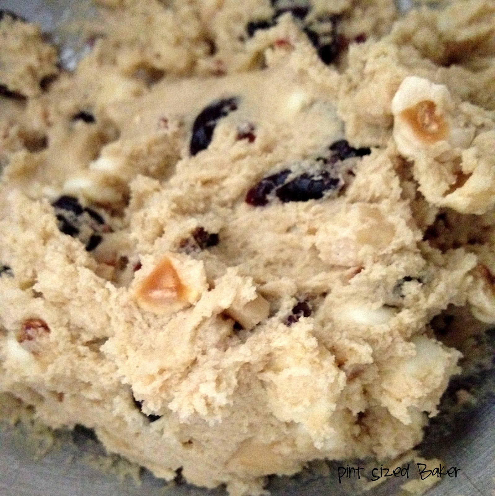 Hand stir in Cherries, White Chocolate Chips and Nuts.